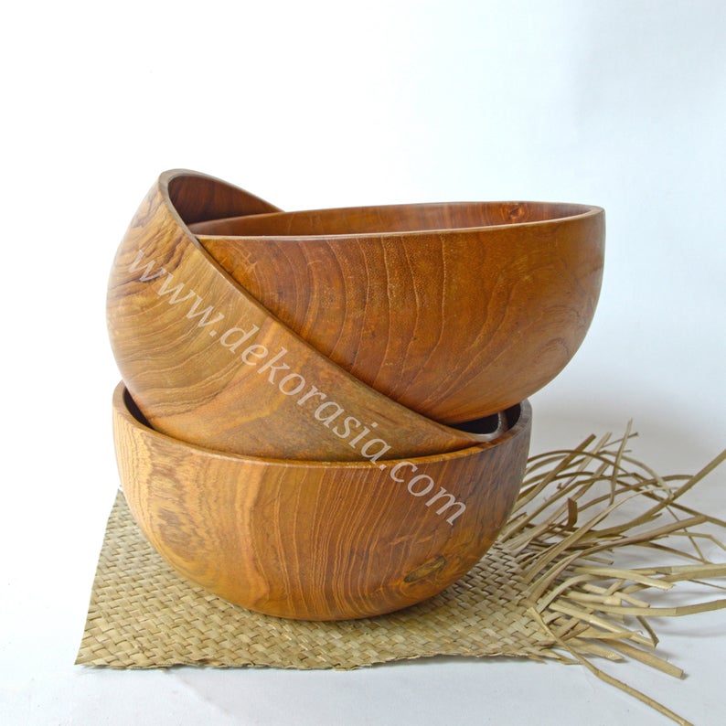 Teak Wood Round Bowl Dish Serving Salad, Wood Bowls Kitchenware